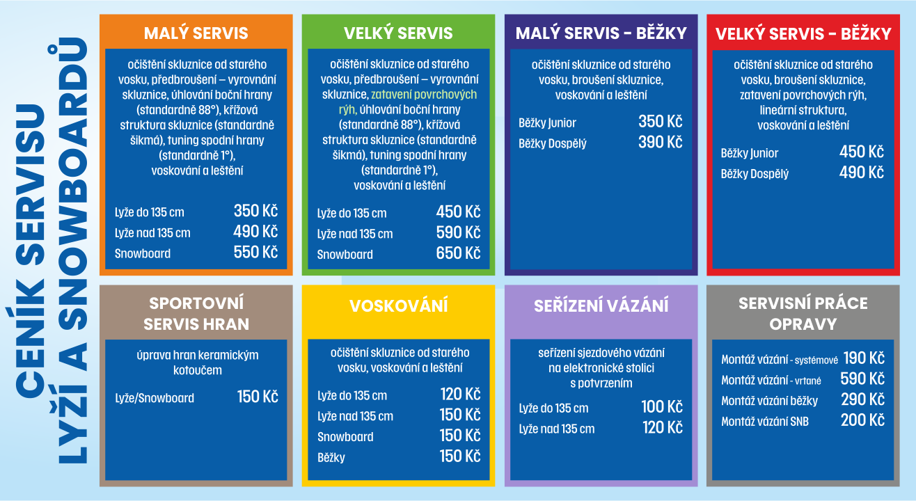 Ať už chystáte lyže na novou sezónu, nebo potřebujete rychlou údržbu před víkendem na horách, vaše vybavení je u nás v dobrých rukou.