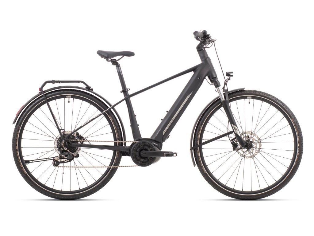 Plně vybavené touringové elektrokolo s výkonným motorem Bosch Active Line a 500 Wh baterií pro dojezd až 140 km*. Motor Bosch se kromě nízké hmotnosti a kompaktních rozměrů vyznačuje plynulejší a méně agresivní dopomocí, kterou oceníte při pohodových výletech nebo každodenním dojíždění. Tomu jsme přizpůsobili i výbavu a na eXR 6050 tak najdete odpruženou vidlici, řazení Shimano Alivio, lehké blatníky, nosič na přepravu cyklobrašen, stojánek nebo kryt řetězu proti ušpinění nohavic.